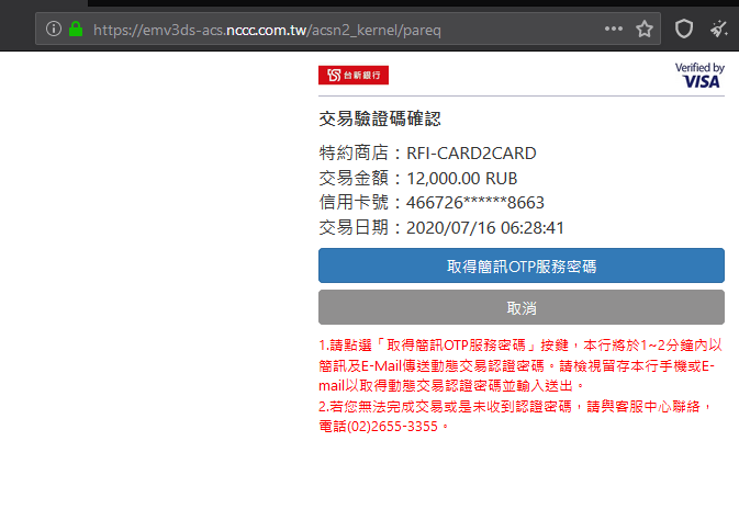 Переадресация на подтверждение карты зарубежного банка: