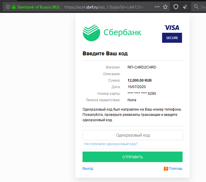 Переадресация на подтверждение карты банка РФ: